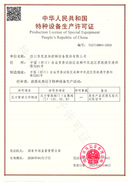 Sichuan SUc Flow Control Equipment Co.Ltd está localizada na Zona Piloto de Livre Comércio da China (Sichuan). Atualmente possui uma oficina de produção padronizada cobrindo uma área de mais de 10.000 metros quadrados e uma área de design e P&D de mais. de 4.000 metros quadrados de construção, produção anual de mais de 50.000 conjuntos de vários tipos de válvulas de esfera liga-desliga, válvulas de controle e válvulas resistentes ao desgaste.