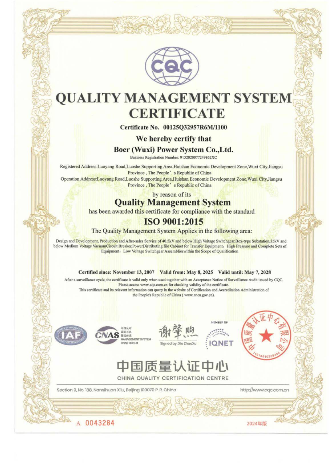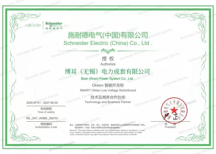 A Boer (wuxi) power system Co., Ltd. , anteriormente conhecida como Fábrica de Equipamentos Elétricos de Wuxi, fundada em 1985, possui atualmente um capital registrado de US$ 71 milhões, com duas grandes bases de produção em Wuxi e Yixing, totalizando mais de 110.000 m² de área fabril e contando com mais de 800 colaboradores, oferecendo aos clientes soluções de sistemas de distribuição de energia “one-stop”. Ao longo de quarenta anos, a empresa manteve-se fiel aos seus valores centrais: “coração como o mar, sucesso do cliente, cumprir compromissos, nunca desistir”. A Boer é focada no desenvolvimento, fabricação e venda de tecnologia e produtos de painéis elétricos completos, e colabora ativamente com empresas multinacionais líderes como Schneider Electric, Siemens e Sydenham (subsidiária da Temper). Desde 1998, a empresa obteve a primeira autorização para produzir painéis da Schneider Electric e se tornou o maior parceiro platinum da Schneider Electric na China, com a linha de produtos mais completa. Em 2011, tornou-se também base global de processamento para os produtos de baixa e média tensão da Sydenham, incluindo LVset, MVset e XGreen, além de formar uma joint venture com o gigante elétrico indonésio AGN para expandir o mercado do Sudeste Asiático. Em 2023, iniciou cooperação com a Huawei, tornando-se parceiro da plataforma HarmonyOS e avançando continuamente no campo de distribuição elétrica inteligente.