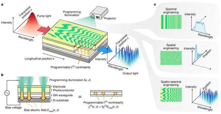 A equipe de pesquisa da Faculdade de Engenharia da Universidade Cornell desenvolveu com sucesso um chip óptico programável, capaz de realizar conversão dinâmica da cor da luz por meio de fusão de fótons, sem a necessidade de hardware específico para diferentes comprimentos de onda. O estudo foi publicado na revista Nature, liderado pelo Prof. Peter McMahon, com Ryotatsu Yanagimoto como primeiro autor e Benjamin Ash profundamente envolvido na fabricação e testes do dispositivo.
