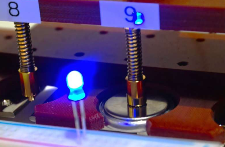 O protótipo de bateria botão de magnésio utiliza um cátodo de óxido amorfo recentemente desenvolvido para alimentar um LED azul. Como acender o LED requer uma tensão superior a 2,5 volts, isso demonstra que a bateria consegue gerar tensão suficiente e fornecer energia para circuitos externos.