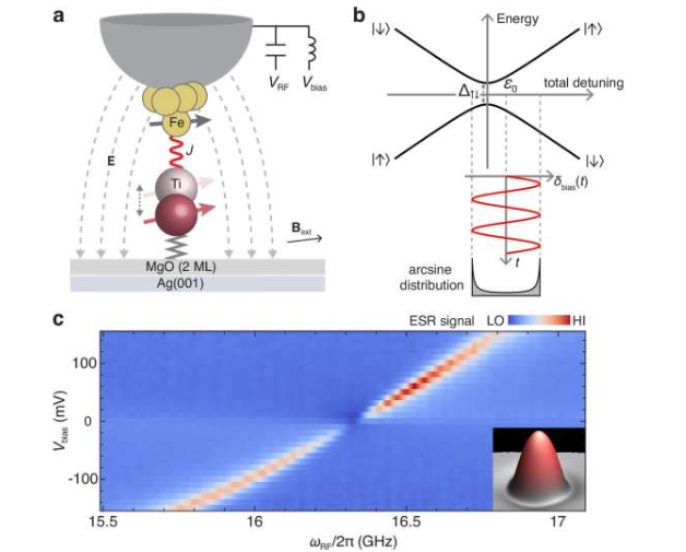Em um estudo publicado na Nature Communications, a equipe liderada pelo professor Yang Kai, do Instituto de Física da Academia Chinesa de Ciências, e pelo professor Joaquín Fernández-Rossier, do Laboratório Ibérico Internacional de Nanotecnologia, alcançou pela primeira vez o controle elétrico total da interferência quântica de spins de átomos individuais na superfície. A pesquisa utilizou microscopia de tunelamento por varredura com ressonância de spin eletrônico (ESR-STM) e desenvolveu um método que emprega campos elétricos intensos para ajustar a interação restrita entre o átomo e a ponta do instrumento, conseguindo induzir interferência quântica Landau-Zener-Stückelberg-Majorana (LZSM) em spins de átomos individuais e acoplados sobre filmes isolantes.
