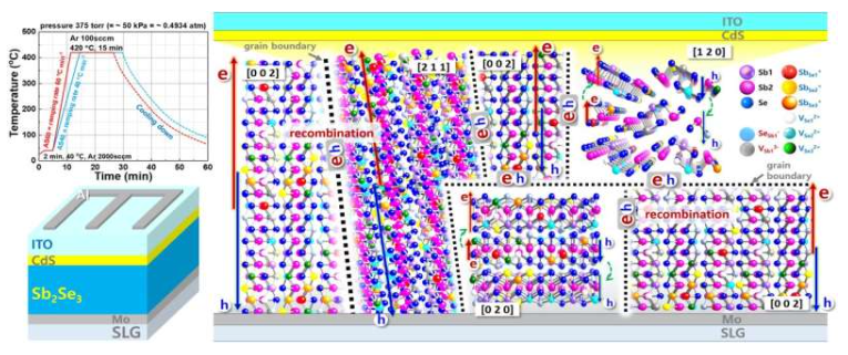 Uma equipe de pesquisa conjunta do Instituto Coreano de Ciência e Tecnologia (KAIST) e da Universidade Nacional de Incheon desenvolveu uma nova tecnologia para aprimorar o desempenho de células solares de seleneto de antimônio (ASSe) por meio do controle de temperatura. Publicado no Journal of Materials Chemistry A, o estudo revela o mecanismo pelo qual a taxa de aquecimento afeta o crescimento cristalino e o transporte de carga.