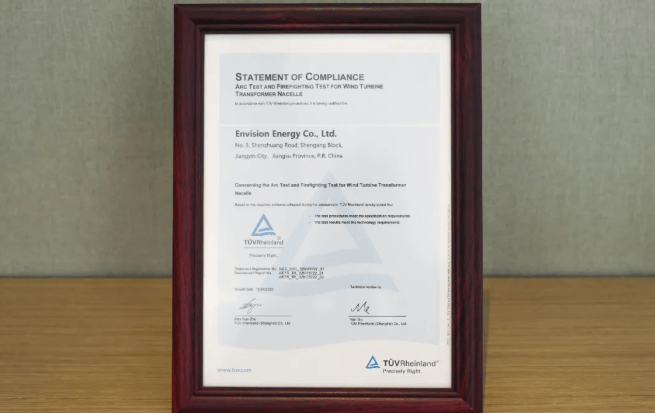 Em março de 2026, o modelo ETOP da Envision enfrentou um "grande exame" — o primeiro teste mundial simultâneo de arco elétrico interno e combate a incêndio no compartimento lateral da nacelle, realizado conforme normas internacionais.