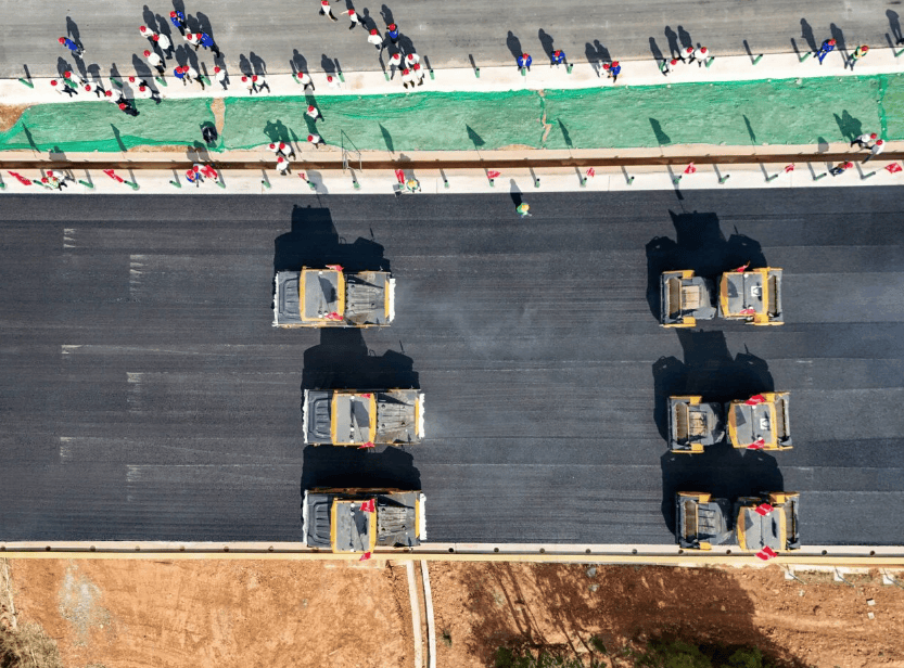 A plataforma de gestão digital de construção de fluxo completo estabelece um sistema de gêmeos digitais. O transporte de matérias-primas registra automaticamente as trajetórias dos veículos e tempos de chegada através de etiquetas eletrônicas RFID. Na etapa de inspeção de qualidade, são gerados automaticamente cromatogramas e emitidos alertas para áreas fracas, com eficiência de detecção 8 vezes maior que o trabalho manual. Durante a construção, a plataforma monitora em tempo real indicadores como velocidade de pavimentação e número de passadas de compactação, com alertas automáticos em caso de anomalias, sendo possível corrigir desvios em até 30 minutos. O projeto também promove estações de mistura combinadas (temporárias e permanentes), equipadas com instalações de proteção ambiental, como tratamento de águas residuais e sistemas de nebulização e aspersão.