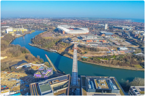 O vereador Kevin Johnston, responsável por negócios, habitação e reconstrução da Câmara Municipal de Sunderland, afirmou que esse é um marco crucial para o projeto. O projeto da passarela faz parte do Projeto Rio de Sunderland, com um investimento total de mais de 1 bilhão de libras esterlinas. A equipe de construção trabalhou durante todo o inverno, inclusive durante a tempestade Eowyn.
