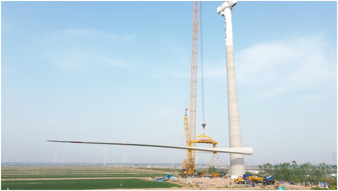 No dia 20 de abril, ao meio-dia, a última lâmina da primeira turbina eólica terrestre da China, com capacidade de 16,2 MW, foi instalada com sucesso a uma altura de 155 metros, concluindo a montagem da maior turbina eólica terrestre do país. Esse marco significativo ocorreu no Projeto Eólico Tianrun Dafeng, no Distrito de Dafeng, cidade de Yancheng, na província de Jiangsu, um importante centro de fabricação de equipamentos para novas energias no Delta do Rio Yangtzé.