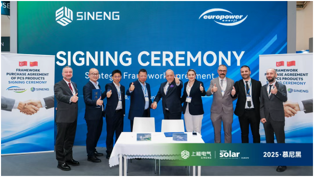 Durante a feira Intersolar Europe 2025, a empresa chinesa Sungrow Power Supply Co., Ltd. (doravante “Sungrow”) firmou oficialmente um acordo-quadro de cooperação com a renomada empresa turca de energia renovável Europower Enerji (“Europower”), marcando um novo passo estratégico na expansão para os mercados de armazenamento de energia da Turquia e da região euroasiática.
