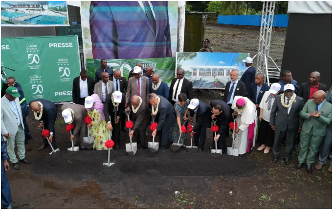 Em 20 de maio, teve início oficialmente o projeto de construção do ginásio e centro aquático financiado pela China nas Comores. A cerimônia de inauguração contou com a presença do presidente comorense Azali, do presidente do Parlamento, de diversos ministros, representantes do corpo diplomático e do embaixador da China nas Comores, Guo Zhijun.