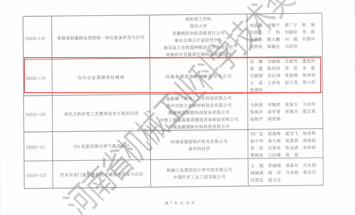 Recentemente, foram anunciados os resultados do Prêmio de Ciência e Tecnologia da Indústria Mecânica de Henan 2025. O projeto de “Válvula Borboleta de Vedação Dura Metálica Bidirecional”, desenvolvido de forma independente pela Quanshun Flow Control, destacou-se entre numerosos concorrentes devido ao seu design inovador e valor de aplicação significativo, recebendo o primeiro prêmio. Este reconhecimento representa mais um avanço importante da empresa em pesquisa científica e inovação tecnológica no campo de equipamentos inteligentes, marcando um novo patamar no desenvolvimento e industrialização de produtos de válvulas de alta gama.