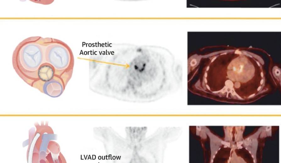Além da amiloidose cardíaca, a cardiologia nuclear também está utilizando cada vez mais exames de imagem para inflamação e infecção miocárdica, particularmente em condições como sarcoidose cardíaca e miocardite. O rápido crescimento no uso de implantes cardiovasculares (como válvulas cardíacas, marca-passos e desfibriladores) levou a um aumento nas infecções cardiovasculares. As diretrizes europeias e americanas recomendam a imagem PET com fluorodesoxiglicose (FDG) para detectar endocardite em válvulas protéticas. "Se um paciente possui uma válvula protética e há suspeita de endocardite valvar, a PET oferece uma vantagem única no diagnóstico, dadas as limitações de outras técnicas. Ela também pode orientar o tratamento, ajudando a determinar se o paciente necessita apenas de cirurgia ou antibióticos, e monitorar a resposta ao tratamento", explica Di Carli. Essa área tem recebido atenção significativa nos últimos cinco anos, atraindo inúmeros jovens radiologistas para os encontros da Sociedade Americana de Cardiologia em Medicina Nuclear. "Eles estão ansiosos para aprender essas novas tecnologias porque reconhecem que elas serão um componente essencial da prática clínica futura."
