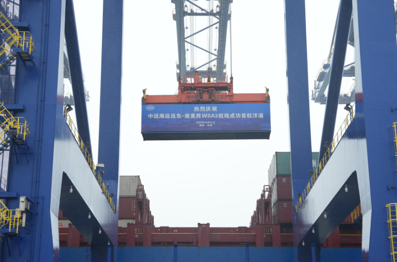 Em 27 de outubro, o navio COSCO Asia partiu lentamente do Terminal Internacional de Contêineres de Yangpu (conhecido como Porto de Yangpu), marcando a viagem inaugural da rota marítima da COSCO Shipping que conecta o Extremo Oriente à costa oeste da América do Sul.