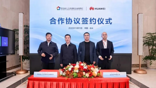 No dia 11 de novembro, o Instituto de Pesquisa da Huawei em Pequim testemunhou uma importante cerimônia de assinatura. O Departamento Provincial de Recursos Humanos e Segurança Social de Hebei e a Huawei Technologies Co., Ltd. assinaram conjuntamente um acordo de cooperação estratégica. As duas partes construirão em conjunto um sistema de "Recursos Humanos e Segurança Social Digitais e Inteligentes" e um sistema de "Talentos Digitais e Inteligentes", impulsionando a construção da "Hebei Digital".