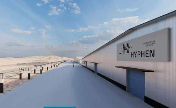 Localizado dentro do Parque Nacional de Tsau Khaeb e abrangendo aproximadamente 4.000 quilômetros quadrados, o projeto visa produzir 1 milhão de toneladas de amônia verde anualmente até o final de 2028. Usinas de dessalinização, plantas de síntese de amônia e instalações de terminal de exportação serão construídas no Cabo Agra, a aproximadamente 80 quilômetros da unidade de eletrólise. A Hyphen afirmou que, uma vez em operação, o projeto planeja fornecer excedente de eletricidade e água dessalinizada para a comunidade local. A empresa planeja dobrar a capacidade do projeto de hidrogênio verde a partir de 2030.
