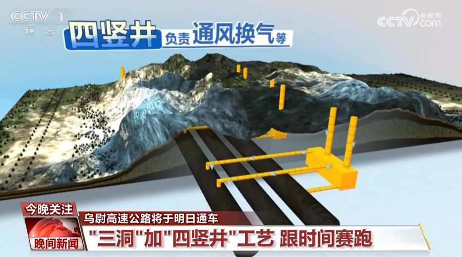 22,13 km – um comprimento equivalente à soma de aproximadamente 5 Pontes de Nanquim sobre o Yangtzé. Como os construtores chineses conseguiram realizar essa tarefa hercúlea de perfurar um túnel dessas dimensões no meio das Tianshan? Diferente do método comum de "escavação dupla de túneis opostos" usado no passado, para o Túnel da Vitória das Tianshan, adotou-se a técnica de "Três Túneis" mais "Quatro Poços Verticais" para acelerar o processo. Os "Três Túneis" são como três longos canudos paralelos inseridos no ventre das Tianshan. Os "Quatro Poços Verticais" funcionam como quatro grupos de passagens auxiliares ao lado desses canudos, responsáveis por ventilação, etc. Dos três túneis, os túneis esquerdo e direito serão as vias principais para o tráfego norte-sul, enquanto o túnel central servirá como túnel de serviço.